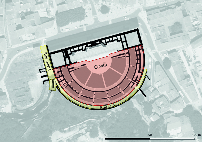 - Plan du secteur de la cavea avec les rues ouest et sud