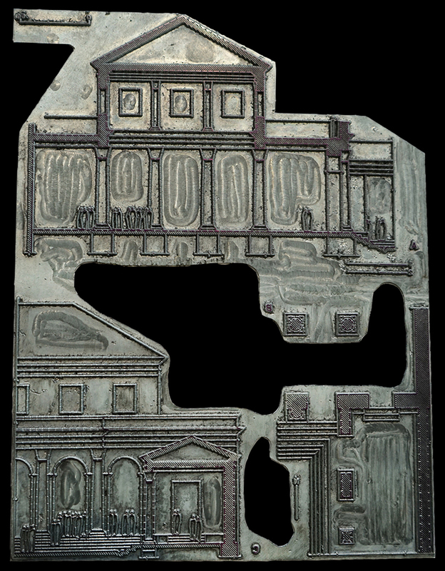 Glanum - Plaque d'impression de la restitution schématique partielle de la basilique et de son portique
