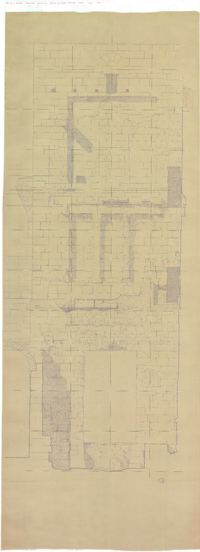 - Tirage à l'encre bleue du relevé pierre à pierre de l'élévation du retour ouest du front de scène au 1/20 (?)