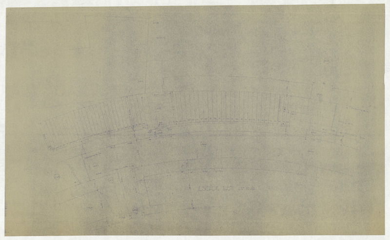 - Tirage à l'encre bleue du plan du projet de construction de l'escalier est - 2ème volée. Plan avec cotes et altitudes Même plan que IRAA_FR_OR_TA_GDFFO_0038 Suite du plan IRAA_FR_OR_TA_GDFFO_0039