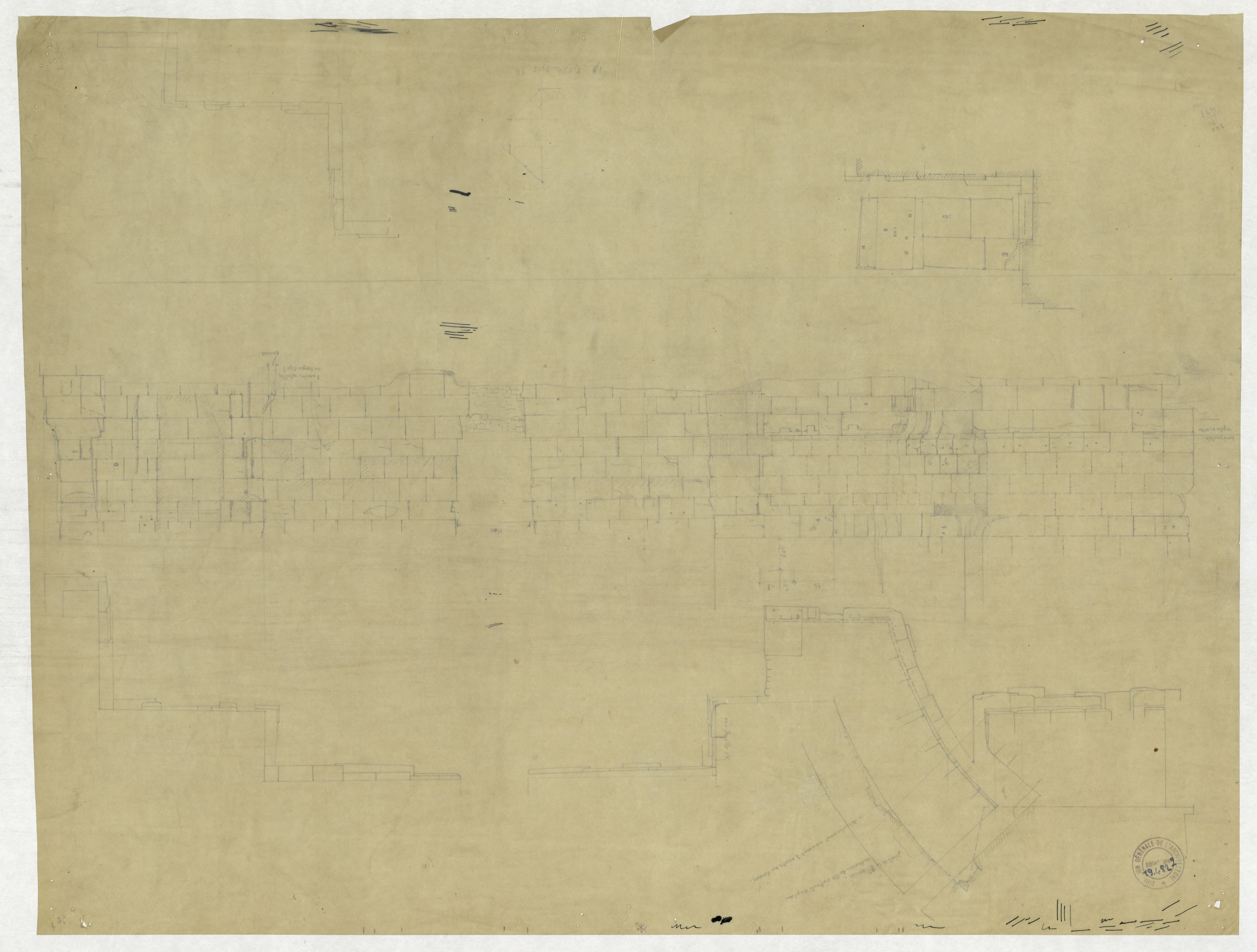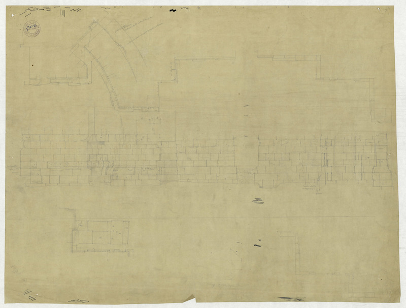Orange - Théâtre antique - Hyposcaenium - Plan et élévation de la partie inférieure du mur de scène à l'est de la porte centrale
